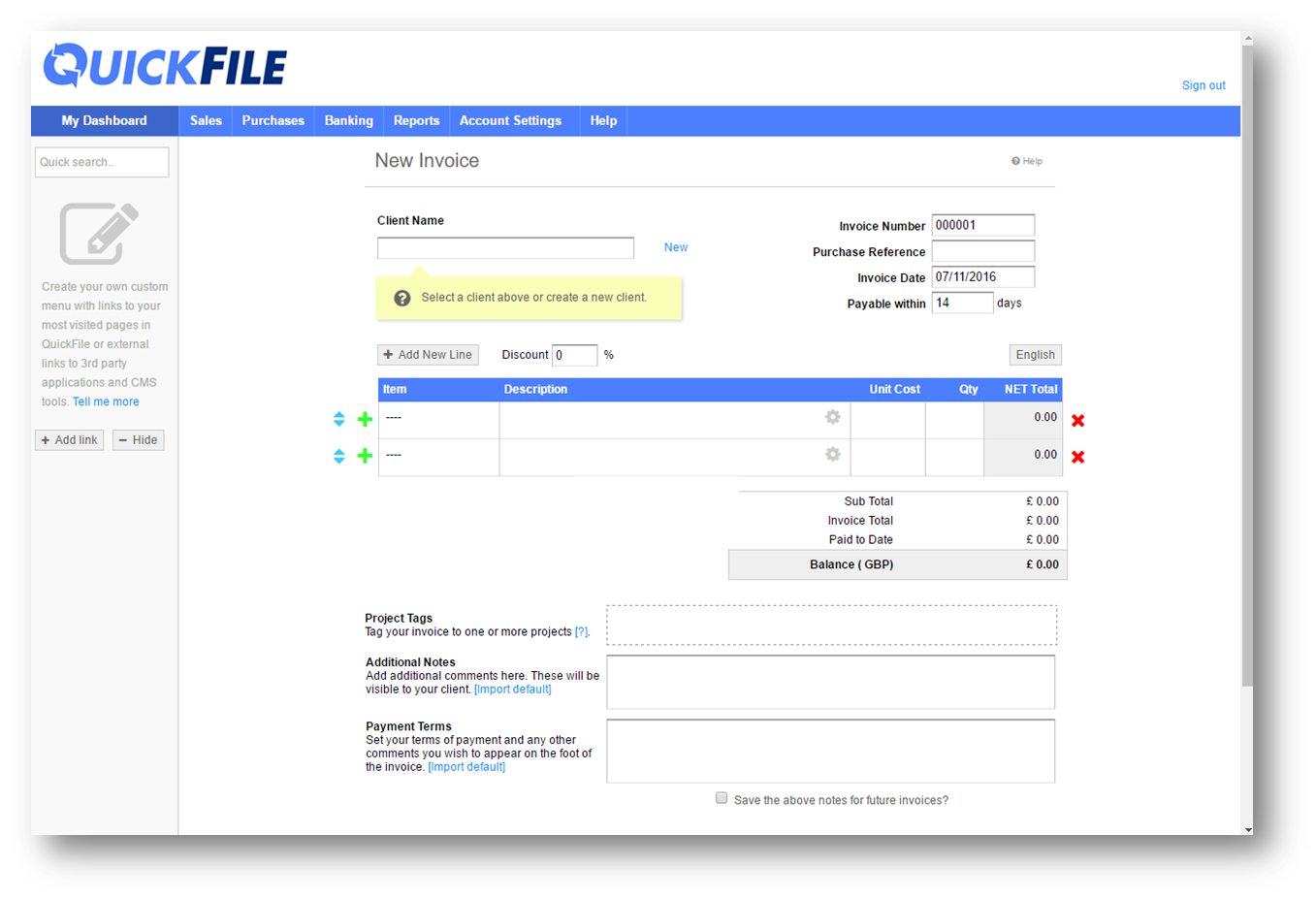 Also, the QuickFile accounting software is a cloud-based accounting package which means, that you don’t have to install it on your local computer. You need to run it online. This may be an advantage if you have a good internet connection especially knowing that the security of the data online is guaranteed. However, you can generate and store reports on your local computer.