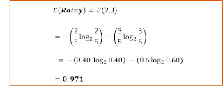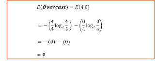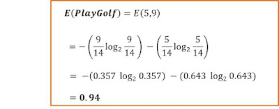 We go ahead to calculate the E(PlayGolf, Outlook) by substituting the values we calculated from E(Sunny), E(Overcast) and E(Rainy) in the equation: