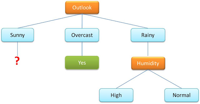 The Rainy attribute could be split using High and Normal attributes and that would give us the tree below.