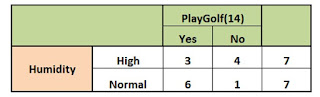 Just like in the previous calculation, the calculation of E(PlayGolf, Humidity) is given below. It