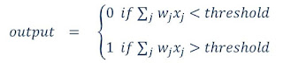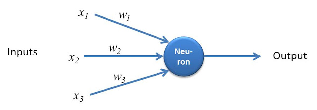 The importance of this inputs is determined by the corresponding weights w1, w2 and w3 assigned to this inputs. The output could be a 0 or a 1 depending on the weighted sum of the inputs.