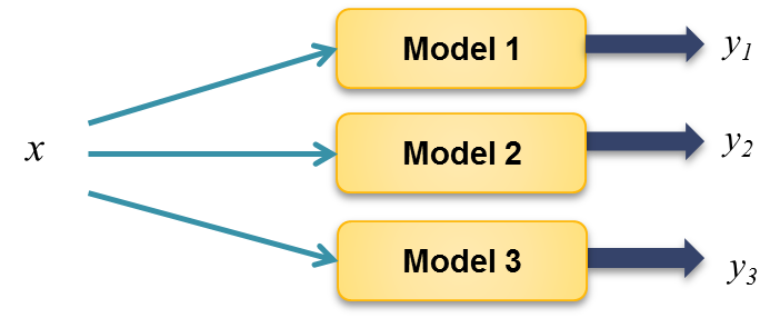 Now, let say we want to predict the output of a new input x, The three models should be able to produce the same output for the same new instance. But when you pass x into each of the models, instead of getting the same output, you get a different output(y1, y2 and y3) for the same x.