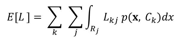 The average loss depends on the joint probability p(x, Ck) and is given by: