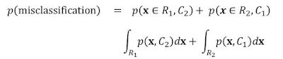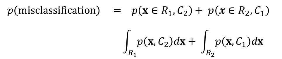 The probability of misclassification is given by: