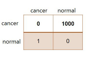 For these two misclassification scenarios, we can see that the loss incurred by the second scenario can be enormous, which may actually be death of the patient.
