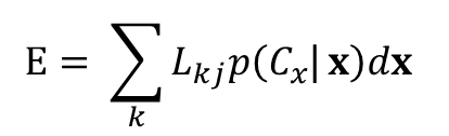 Assuming that for a new value of x, we assign it to class Cj whereas the real correct class is Ck. It means we have incurred a loss Lkj, which is the k, j element of the loss matrix.