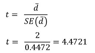 We see that the calculated value of t is greater than the critical value of t. This means that there is significant difference in the means of the two samples. Therefore we reject the null hypothesis that states that the two means are equal.