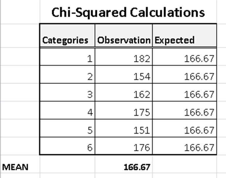 This is calculated by dividing the squared difference calculated in step 5 by the expected value for each of the value.
