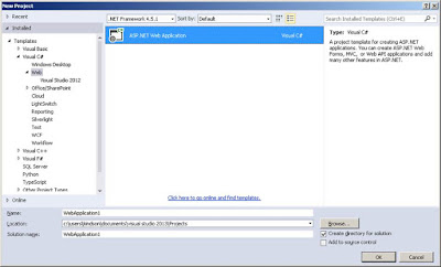 Ensure to first choose the C# web template of ASP.NET Web application. The project has to be of this type in order to create web services project. By choosing this options, Visual Studio will then carry out the necessary steps to add required files which are required by any web-based application.