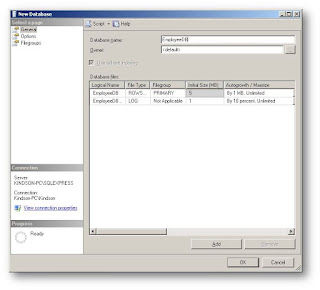 3. In the Create New Database Wizard Enter the name of the database as EmployeeDB ( you could use any name you want)