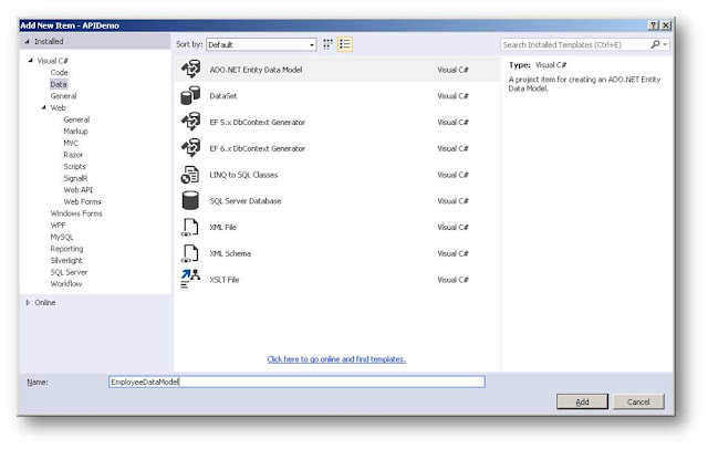 Step 4: In the list of items, select ADO.NET Entity Data Model