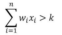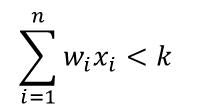 A linear separator is a a vector-threshold pair, (w, k) that satisfies the two relations given above