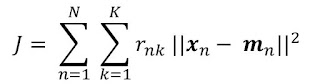In other words, J represents the sum of squares of the distance of each data point to its assigned vector mk.