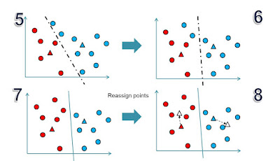 Step 1: For each unit, x, in the input space, place it in the cluster whose current centroid it is nearest to.