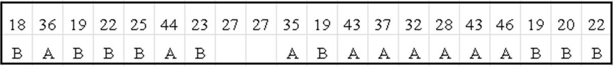 18, 36, 19, 22, 25, 44, 23, 27, 27, 35, 19, 43, 37, 32, 28, 43, 46, 19, 20, 22