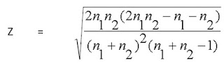 What if the sample size is large? In this case we could use a formula to solve it. This formular calculates the the test statistic based on n1 and n2.