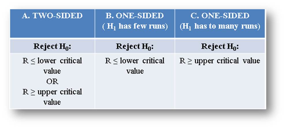 H1: the pattern of occurence is not random (because there are too few runs to be atributed as random)