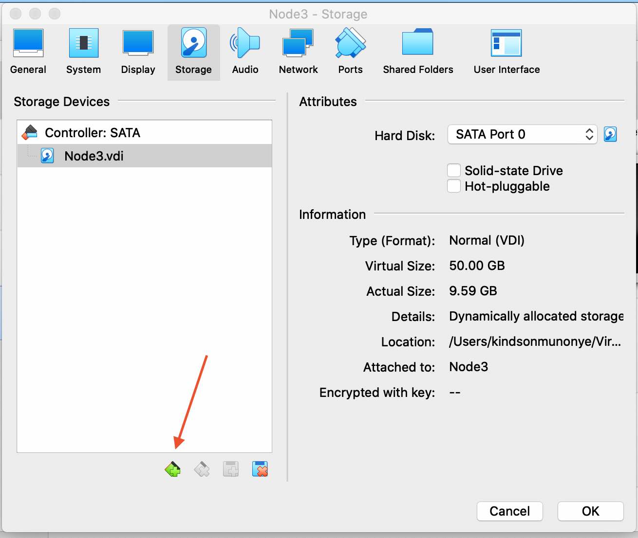 In this demo, we will setup virtual machines using VirtualBox. Then we add disks to one of the nodes (NODE3). These disk would then be configured to be used by the network as iSCSI disks.
