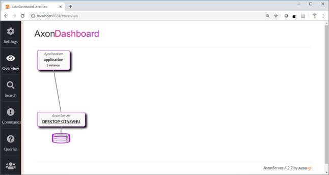 The axon server Dashboard is shown below. You can see that our GiftCard application is running as an instance as shown below.